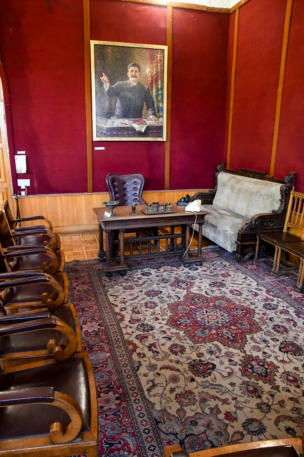 de begane grond. Stalins vader, Vissarion Jughashvili, een plaatselijke schoenmaker, huurde de linkerkamer van het gebouw. Stalins treinwagon een groen