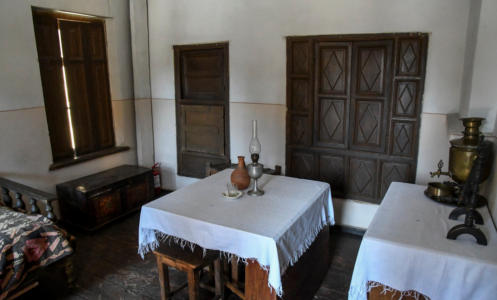 Italiaans paviljoen bevindt zich een bescheiden woning waar Stalin in 1878 werd geboren en zijn eerste vier jaar doorbracht. Dit huisje heeft twee kamers op