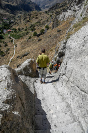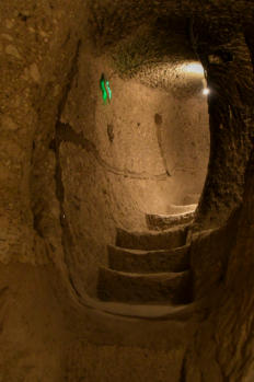 door voetpaden en tunnels. Via een van de ondergrondse tunnels verlaten we Uplistsikhe.