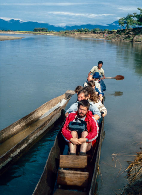 struikgewas en schemerige bossen. De lange, smalle traditionele, houten kano biedt plaats aan de hele groep, niet helemaal op ons gemak gezien de niet al