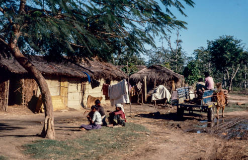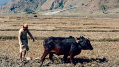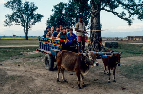 Een boer in de omgeving is bereid om ons een lift te geven. Een ossenkar