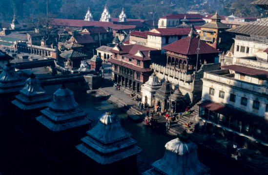 in de hindoeïstische rituelen rond leven en dood. en is een serene plek vol devotie en mystiek. De 18de eeuwse Pashupatinath tempel is opgedragen aan de leraar van Pashupati, namelijk Guru Dajshina Murti en is een complex van