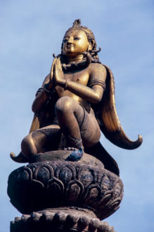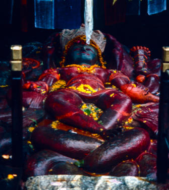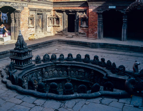 In Buddhanilkantha bij de Bhuijasi Narayan-tempel ligt, in een verzonken waterbassin dat de kosmische zee voorstelt, een zwart basaltstenen beeld van de slapende hindoegod Vishnu, achteroverleunend op de kronkelende windingen