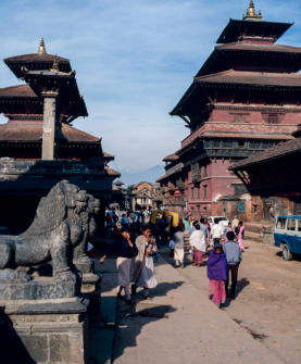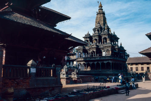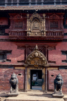 van de Newar-architectuur en een 12-tal tempels in harmonisch verband. Voor de Krishna Mandir tempel staat op een hoge pilaar Garuda, de mythologische vogel en het rijdier van Vishnu. De Krishna Mandir is een van de fraaiste