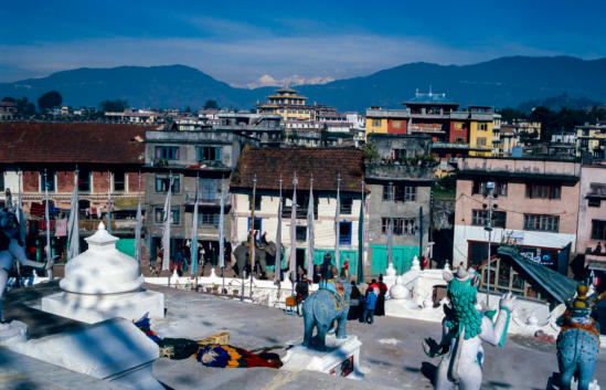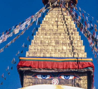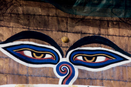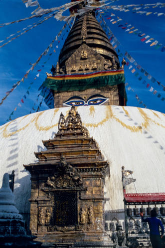 voorloper was van de huidige stupa. De alziende ogen van de Boeddha staren vanaf de stupa op de
