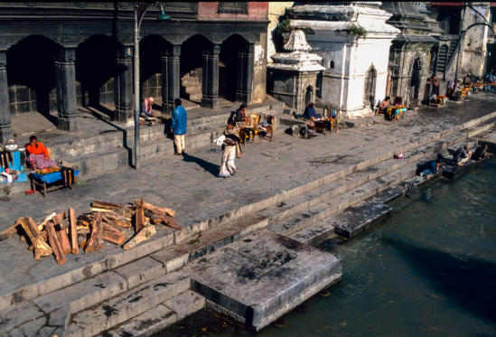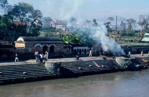 op enkele houten blokken naar de rivier gedragen. Het lichaam wordt op de brandstapel gelegd, toegedekt met stro en takken en het vuur wordt aangestoken. Hier vinden geen ceremonies plaats. Patan is een van de drie koningssteden