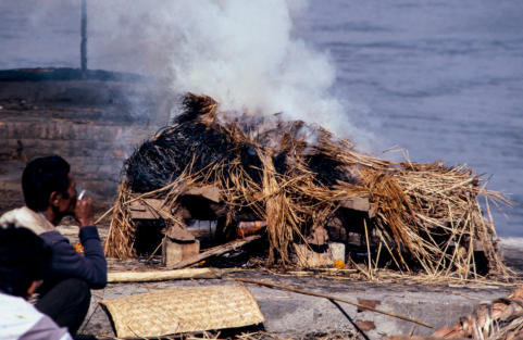 tot het hele lichaam verbrand is. Na de crematie wordt alle as in de Bagmati geveegd