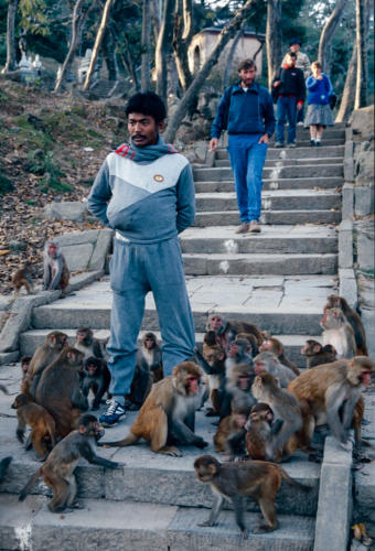 De tempel ter ere van Vishvarupa is de thuis van honderden apen. De apen worden