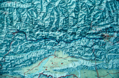 de middag bereiken we Mugling. Mughing ligt halverwege Pokhara en Kathmandu, hier is ook de kruising met de Mahendra Highway uit India.