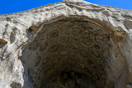 zonnetempel. Het grottencomplex bevat heidense offer plaatsen en functionele gebouwen zoals een bakkerij, een gevangenis, kelders en zelfs een amfitheater, allemaal verbonden