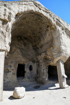 De stad diende als woonplaats voor de heersende klasse, zoals deze grotwoning met driehoekige daktop. Uplistsikhe, wat "de Fort van de Heer" betekent dateert uit de 6e eeuw