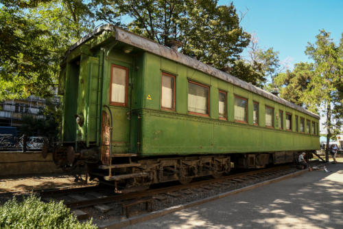 de begane grond. Stalins vader, Vissarion Jughashvili, een plaatselijke schoenmaker, huurde de linkerkamer van het gebouw. Stalins treinwagon een groen