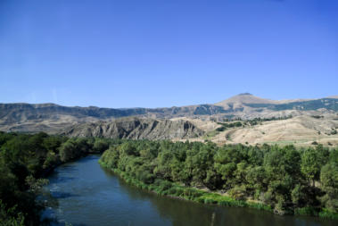 We volgen met Koera rivier, met zijn vele forten op de omringende heuvels, naar Akhaltsikhe.
