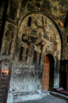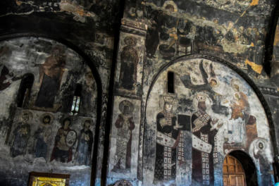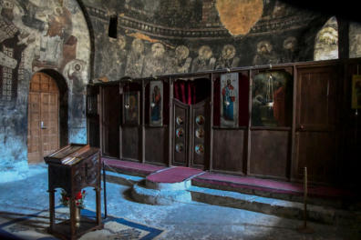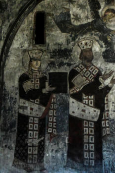 het klooster. De grotten zijn versierd met ingewikkelde fresco's en