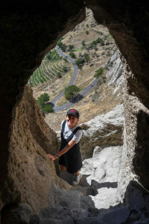 door voetpaden en tunnels. Via een van de ondergrondse tunnels verlaten we Uplistsikhe.